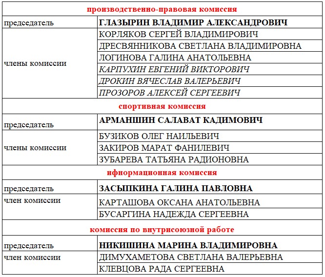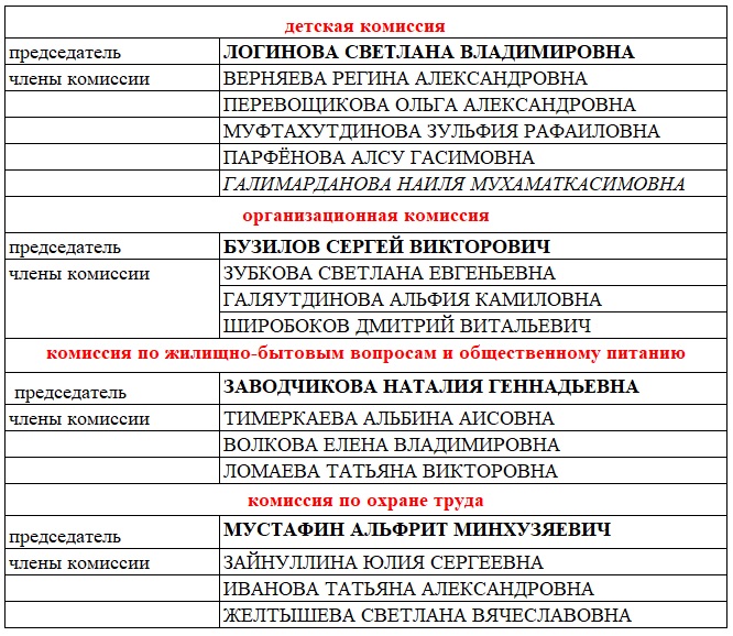 Состав комиссий Профкома